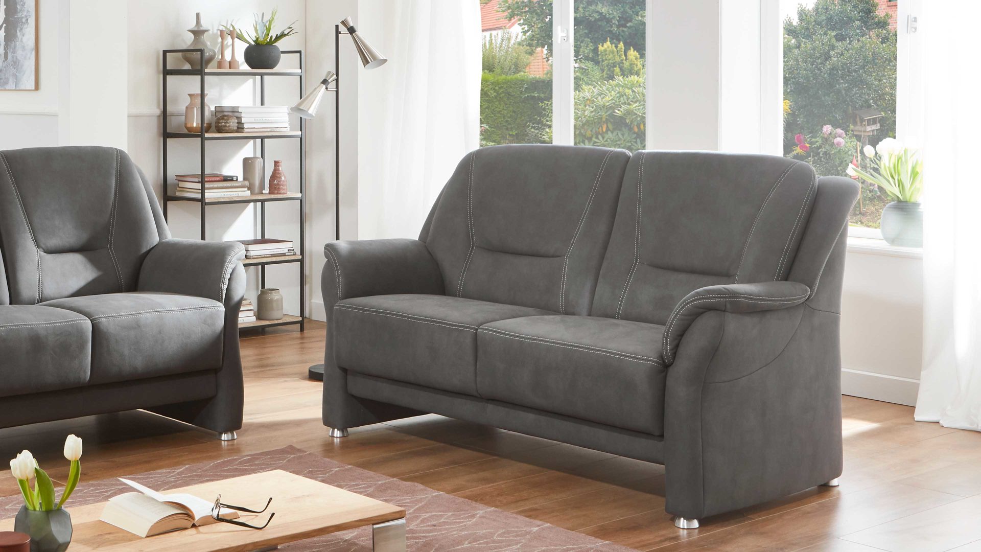 graue Mikrofaser Feeling & Metallfüße