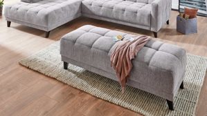 • Die Abbildung zeigt ein Wohnbeispiel, welches auch Dekoration sowie separat erhältliches Zubehör enthält. Im Lieferumfang enthalten ist ein Ecksofa mit Sitztiefen- und Kopfpolsterverstellung.