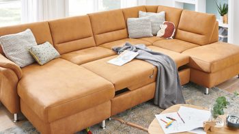 Gönnen Sie sich zu diesem Polstermöbel doch Kopfstützen, Kissen und weitere Funktionen gegen Mehrpreis. Darüber hinaus ist die Eckkombination alternativ auch mit Holzfüßen lieferbar. Zusätzlich gibt es zu dieser Polsterecke auch eine attraktive Bezugsauswahl sowie einen großen Typenplan.