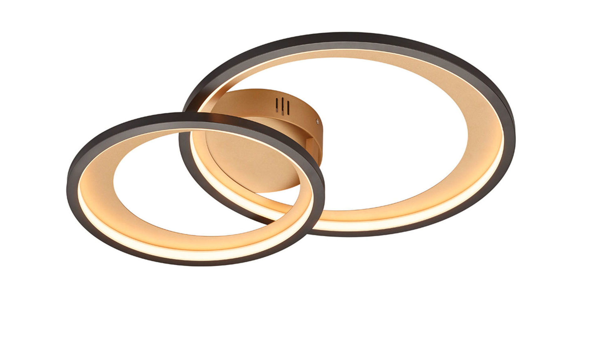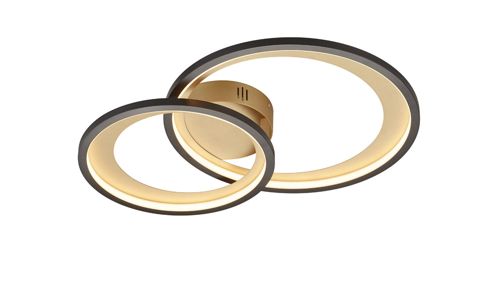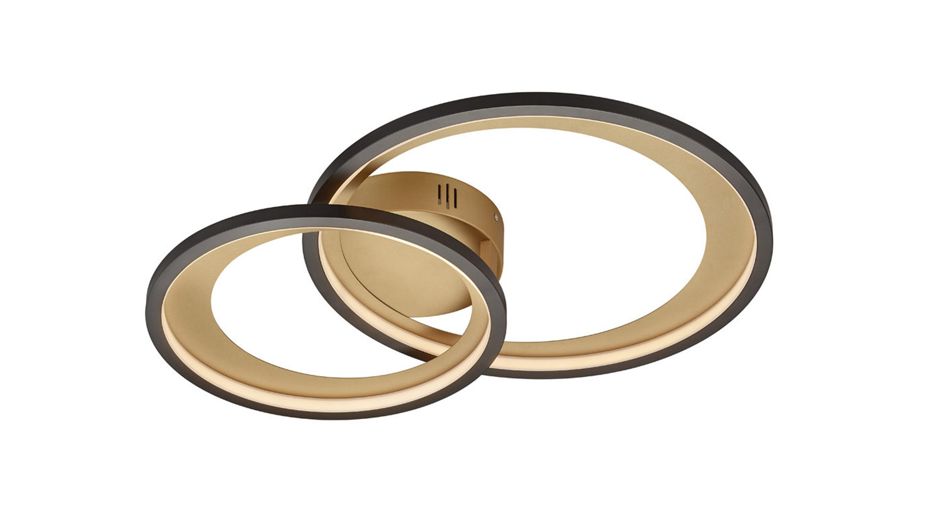 Die TRIO Deckenlampe Granada verbindet mattschwarzes und goldfarbenes Metall.