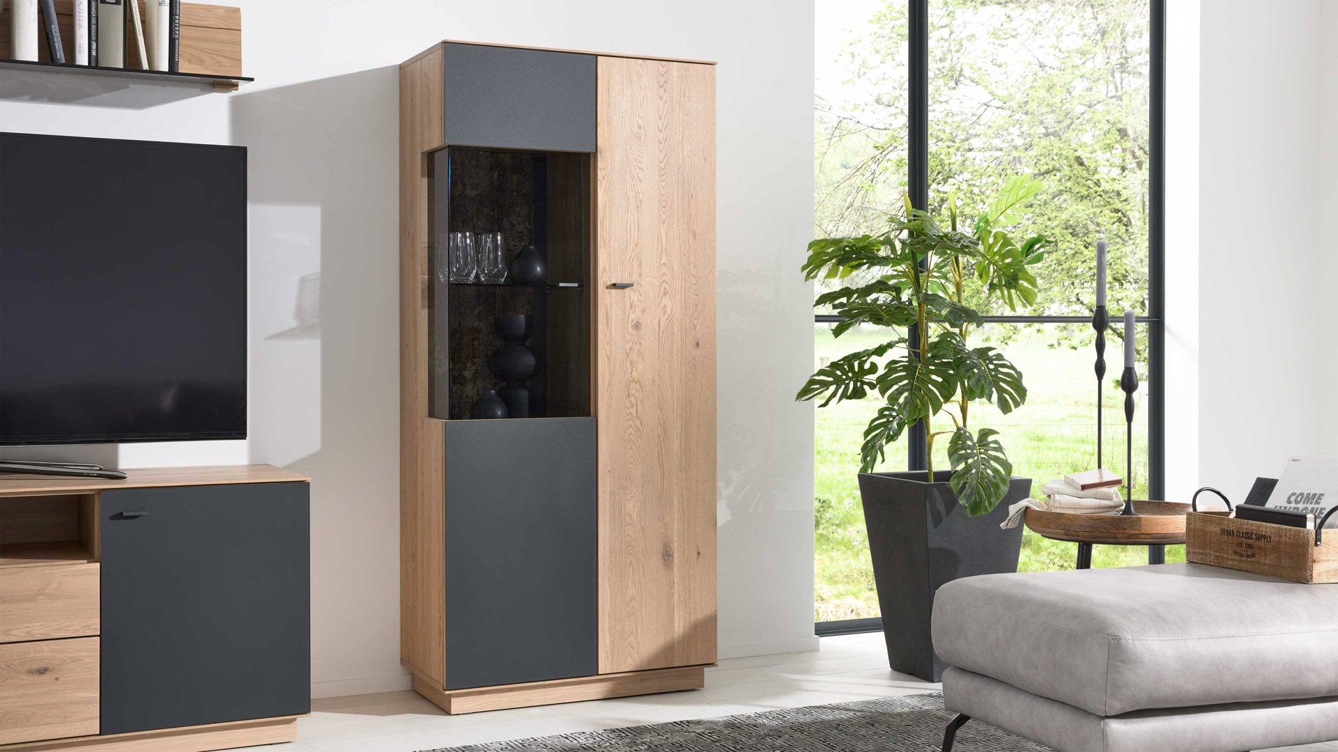 Natürlich, elegant und funktional – die Vitrine aus der Interliving Wohnzimmer Serie 2025