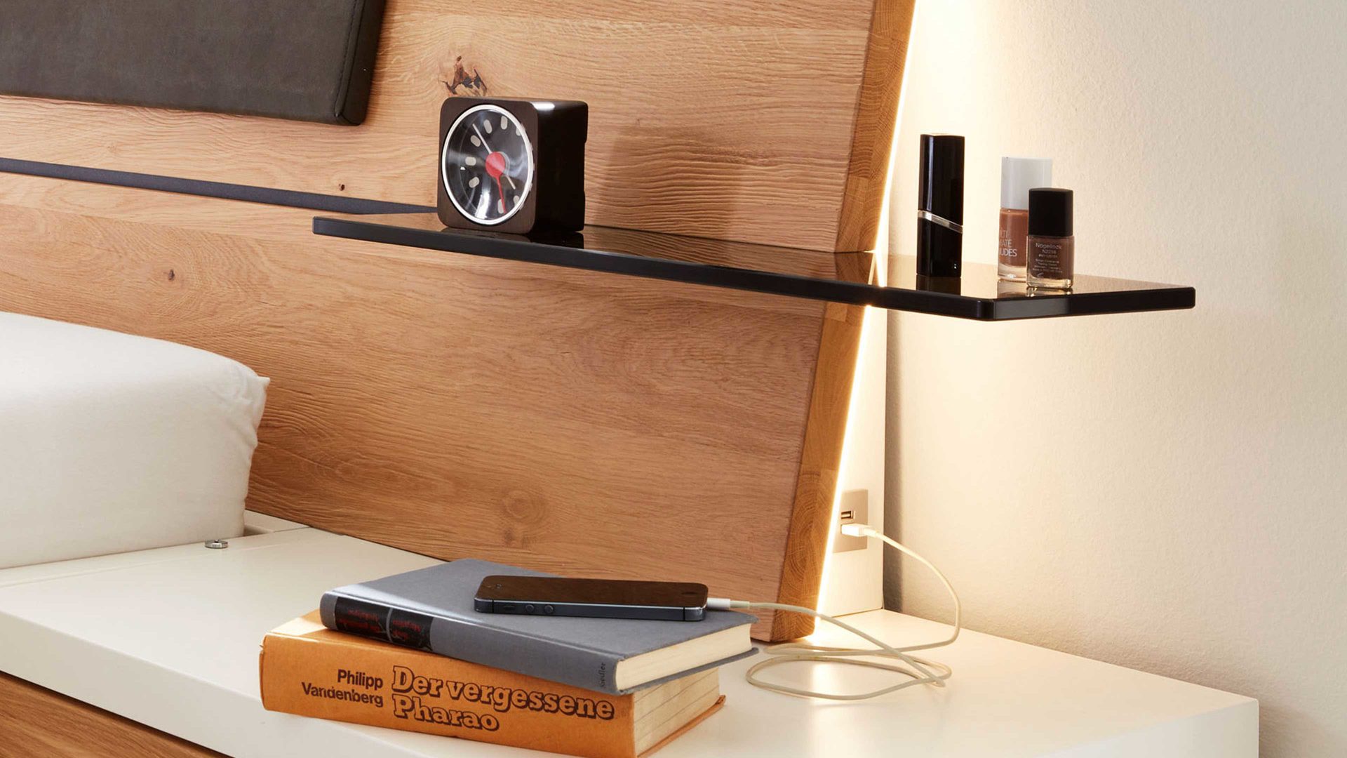 Edle Ablagefläche direkt am Bett – Interliving Schlafzimmer Serie 1019 Glasboden-Set