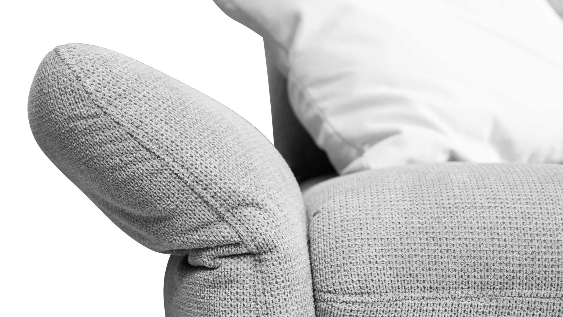 Mittels Rasterbeschlag lässt sich die Armlehne mehrfach verstellen und dadurch stets in die gewünschte Position bringen. Beispielsweise empfiehlt sich die geneigte Funktions-Armlehne bei einem Kraft spendenden Powernap zwischendurch als bequeme Kopfstütze.