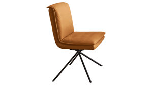 sonnengelber Lederbezug mit einer beigen Kontrastnaht und mattschwarzen Metallkufen