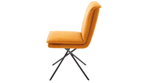 sonnengelber Lederbezug mit einer beigen Kontrastnaht und mattschwarzen Metallfüßen