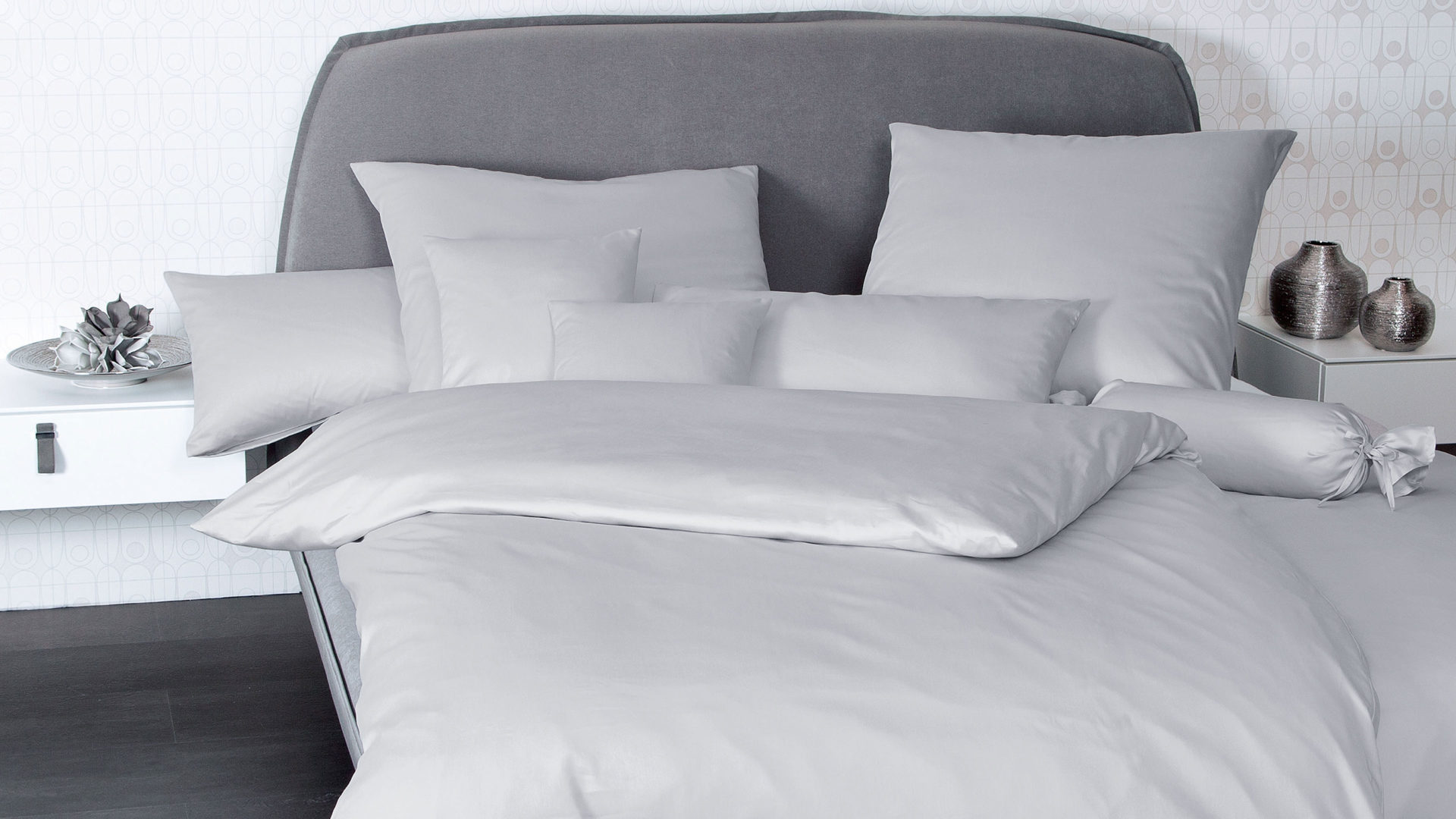 Das Modell Colors 31001 von der Marke Janine® aus geschmeidigem Mako-Satin in platinfarben in der Größe ca. 200 x 200 cm und zwei Kissenbezüge ca. 80 x 80 cm. Mako-Satin von Janine ist aus 100% naturreiner Mako-Baumwolle gefertigt. Dank der Mercerisierung, einem speziellen Veredlungsprozess für Baumwolle, erhält der Bettbezug ein samtiges Glanzfinish, das nicht nur das Dessin unterstreicht, sondern auch angenehm leicht und weich auf der Haut anliegt. Dazu ist die Janine-Satinbettwäsche äußerst pflegeleicht. Die Bettwäsche ist bis 60 Grad waschbar und trocknergeeignet. Des Weiteren ist in den Bettbezug ein Reißverschluss eingearbeitet, mit dem Sie die Bettzeuggarnitur einfach mit einem Zip wieder aufziehen können.