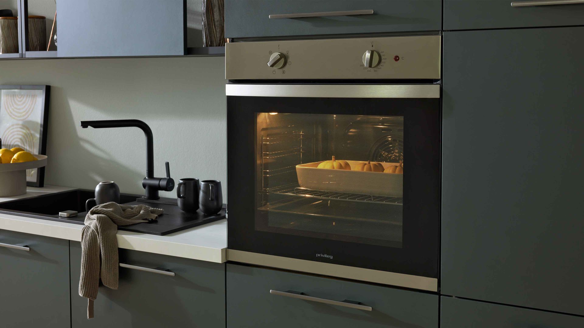 Mit den hochwertigen Geräten bist du bestens ausgestattet. Dazu gehören der privileg Kühlschrank PRC9VS2E mit ca. 123 cm Nischenhöhe und Energieeffizienzklasse E (Spektrum A bis G), das autarke privileg Glaskeramik-Kochfeld PCTACK6042IN mit ca. 60 cm Breite sowie der gorenje Backofen PBWK3 NN5F IN, ebenfalls ca. 60 cm breit, mit Energieeffizienzklasse A (Spektrum A+++ bis D). Ergänzt wird die Technik durch die kopffreie privileg Dunsthaube DGHVP63LTK mit ca. 60 cm Breite und Energieeffizienzklasse B (Spektrum A bis G). Abgerundet wird das Paket durch eine mattschwarze Einbauspüle mit Einhebel-Mischbatterie.