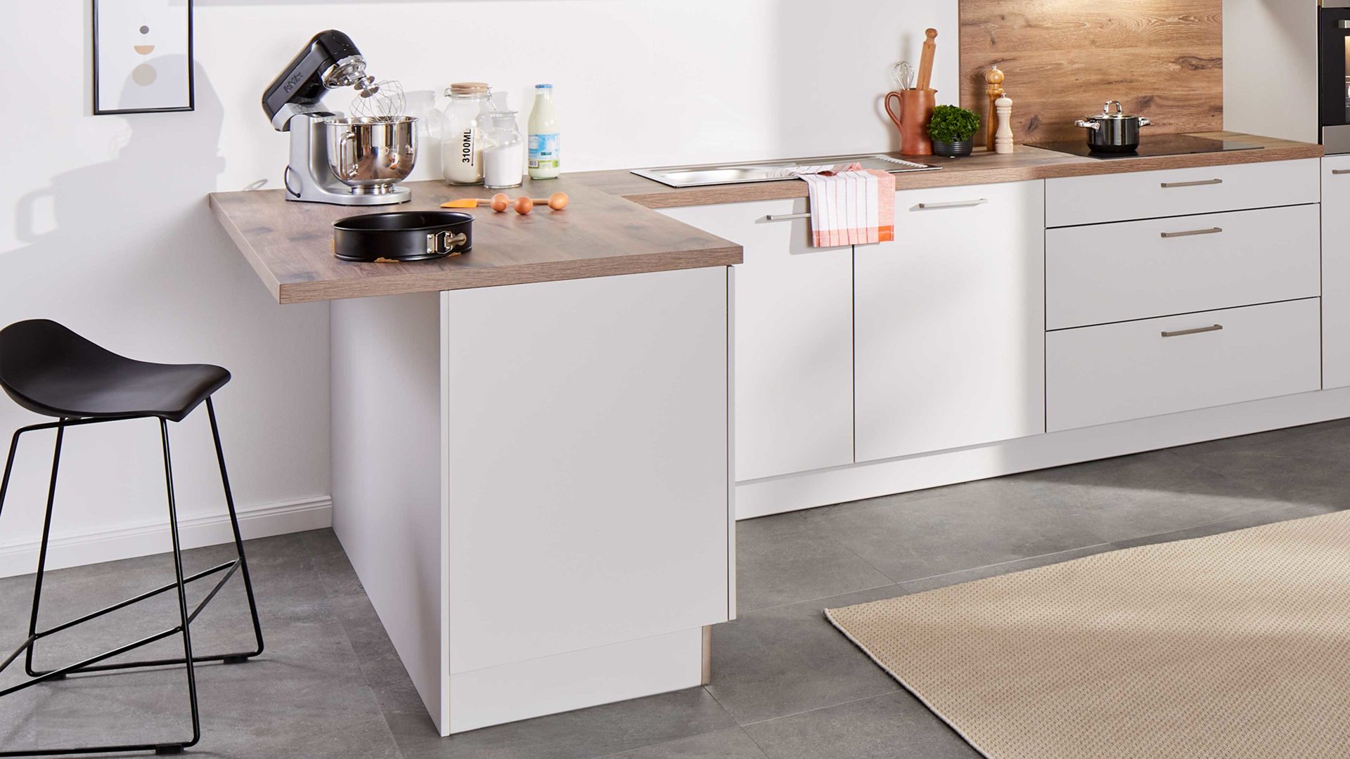 Einbauküche in U-Form mit angesetztem Frühstücksplatz