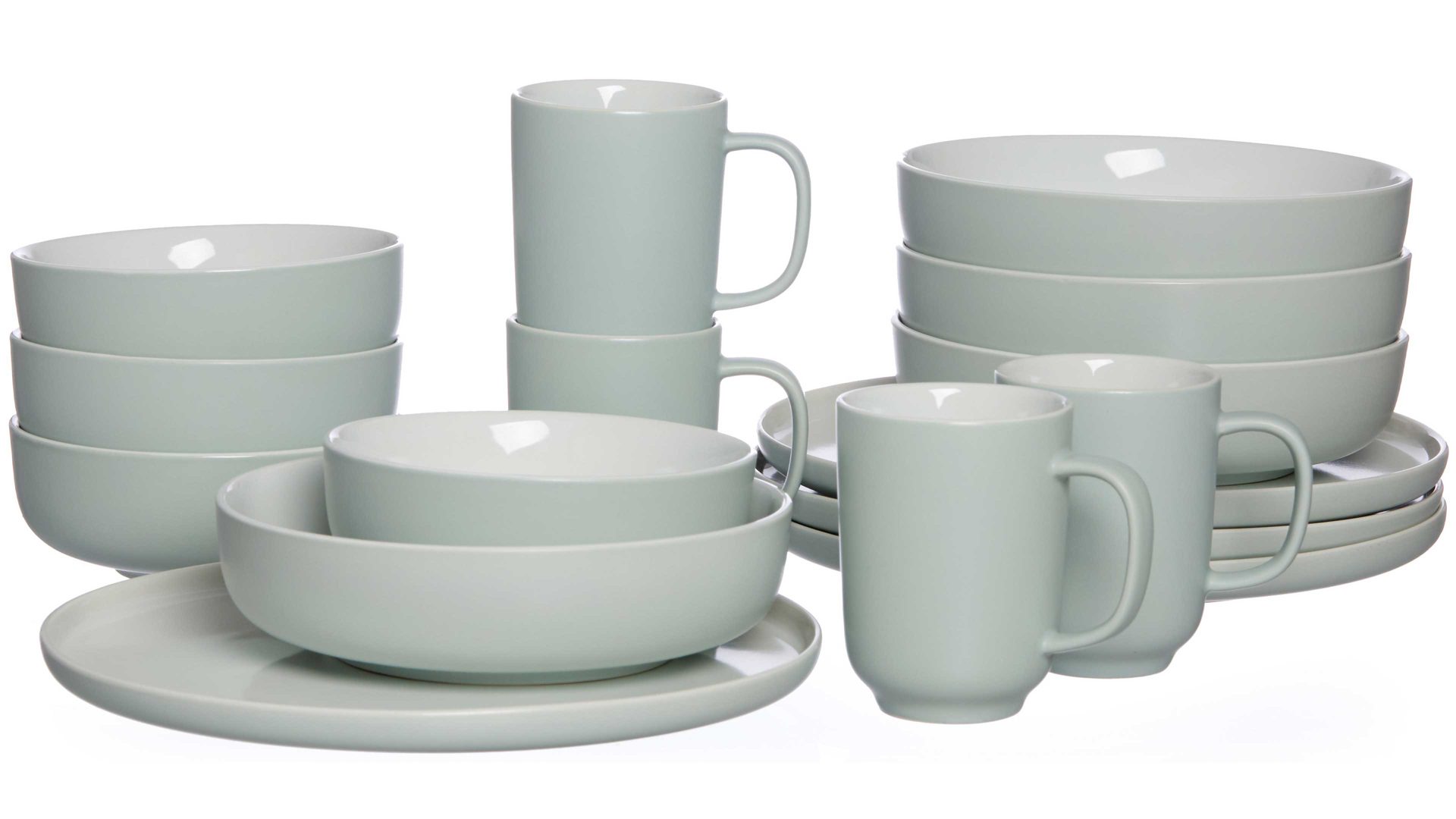 Dieses Kombiservice verbindet Schlichtheit und Eleganz auf verblüffend-attraktive Art und Weise. Es kombiniert Geschirr in den Farbtönen Blau und Grün, jeweils akzentuiert durch einen bräunlichen Rand. Trotz des augenscheinlichen Kontrastes von Hell und Dunkel harmonieren die Bestandteile des Essgeschirrs ausgezeichnet miteinander. Sie fügen sich stilvoll in Ihren Geschirrbestand und Ihre Einrichtung ein, sorgen gleichzeitig allerdings auch für kreativen Pepp und einen Hauch von antikem Flair. Hergestellt ist das Service aus edler Keramik.