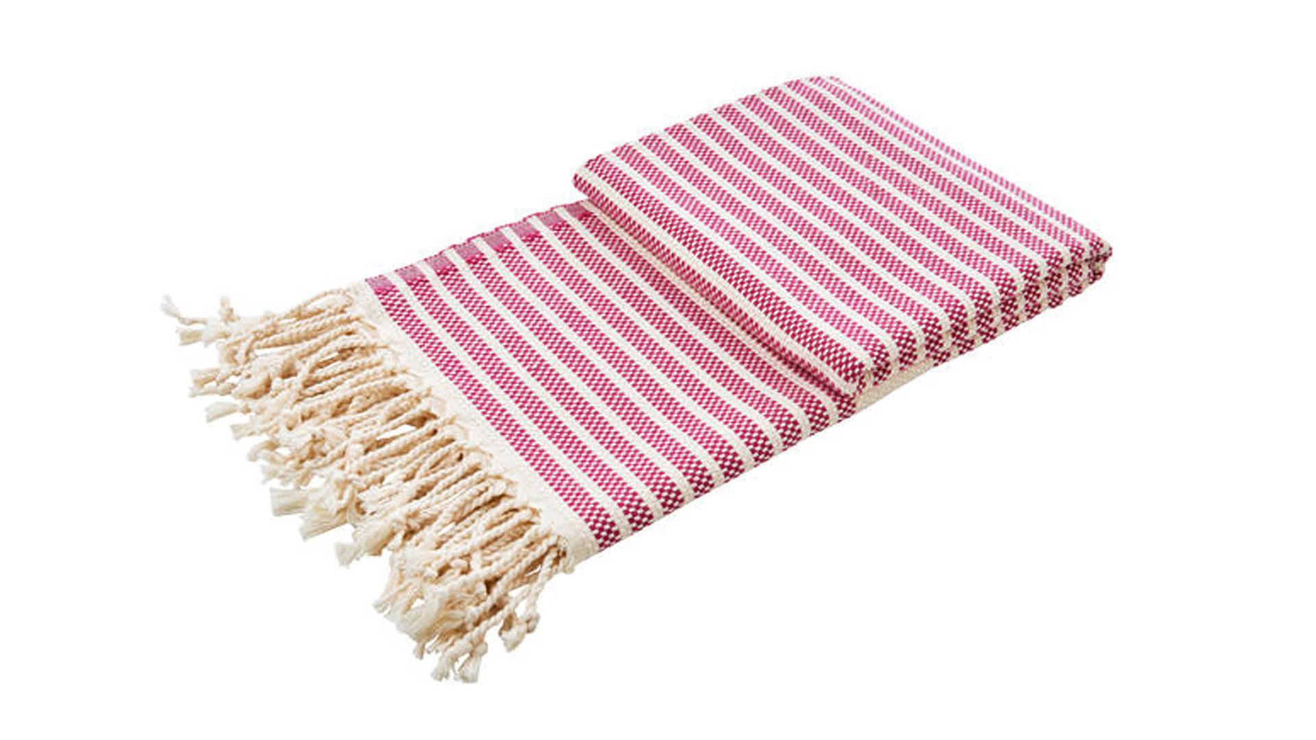 Pink und Weiß gestreiftes Baumwollgewebe mit geknoteten Fransen