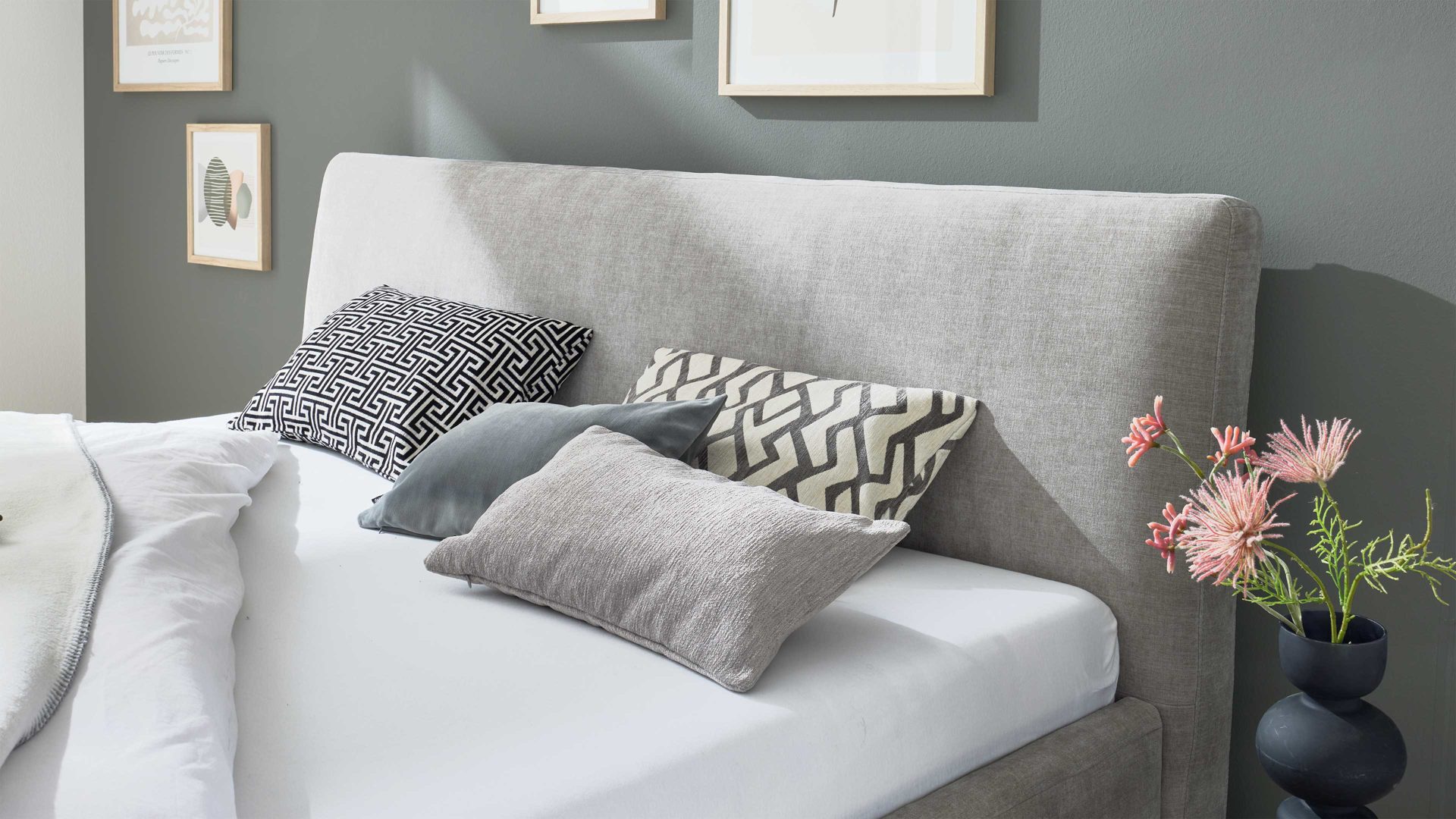 • Die Abbildung zeigt ein Wohnbeispiel, welches auch Dekoration sowie separat erhältliches Zubehör enthält. Im Lieferumfang enthalten ist ein Polsterbettgestell.