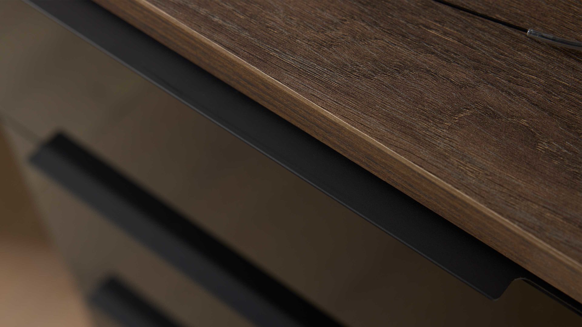 Schwarzglas & Atlantic Eiche - drei Schubladen, Breite ca. 40 cm