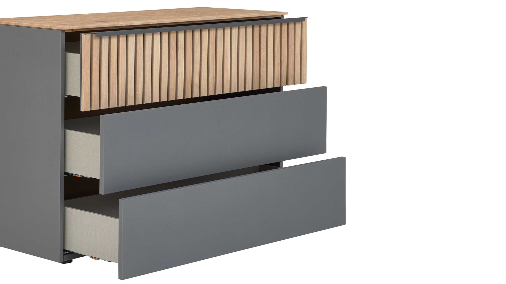 Drei Schubladen mit Komfort-Selbsteinzug