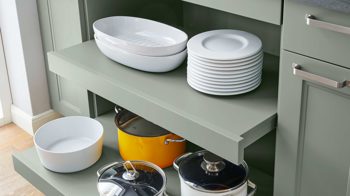 Gegen Mehrpreis können Sie die individuell planbare Systemküche Made in Germany um eine erstklassige Armatur, einen praktischen Geschirrspüler und eine schicke Beleuchtung ergänzen.