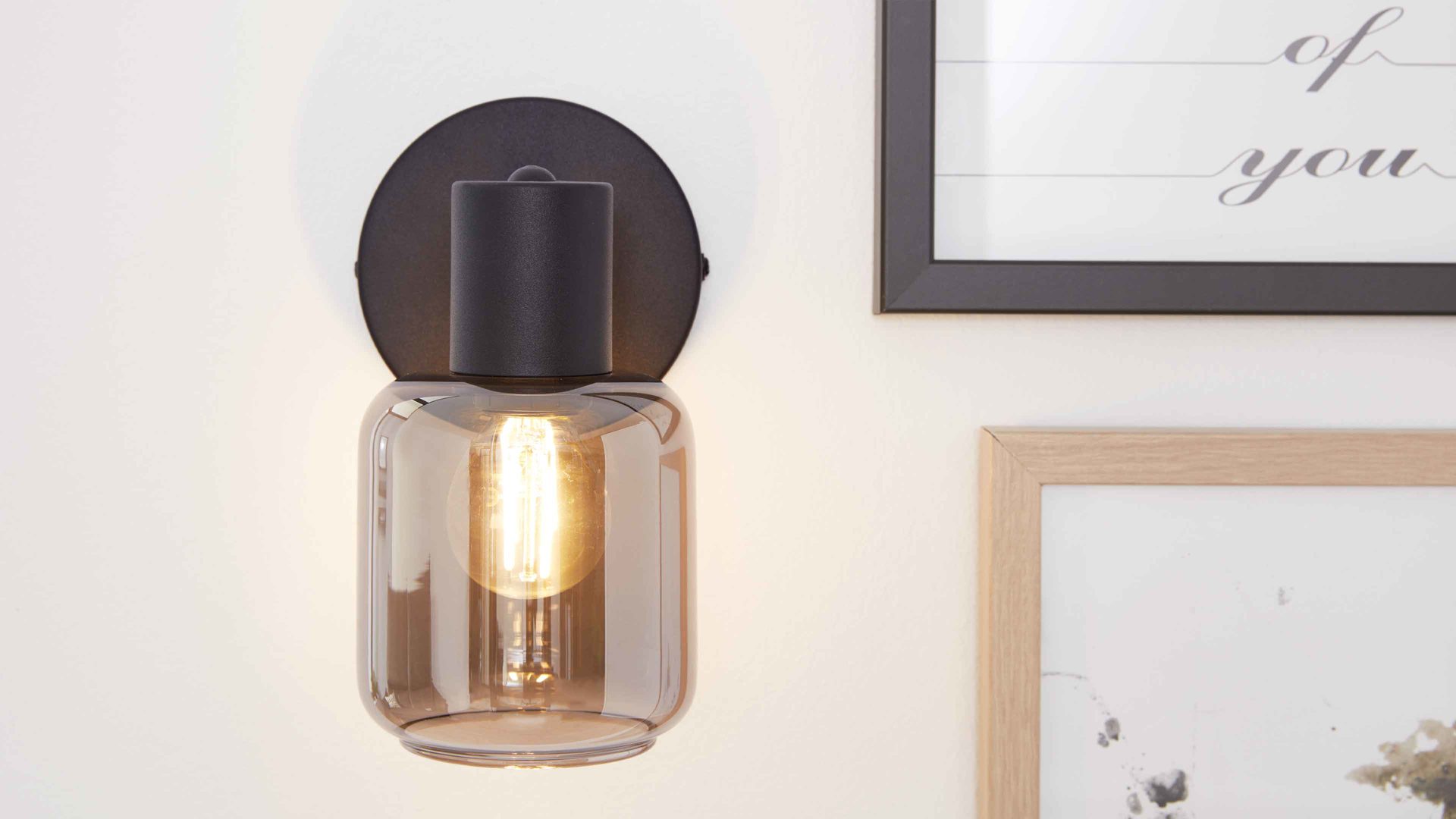 Die elegante Wandleuchte aus der Interliving Leuchten Serie 9341 bringt markanten Industrial-Charme direkt an deine Wand. Das mattschwarze Metallgestell in Kombination mit dem rauchfarben verspiegelten Glasschirm sorgt für ein edles, urbanes Design mit Charakter. Ob im Flur, Schlafzimmer oder als Akzentlicht im Wohnzimmer – diese Lampe setzt ein stilvolles Statement und schafft ein angenehm modernes Lichtambiente.