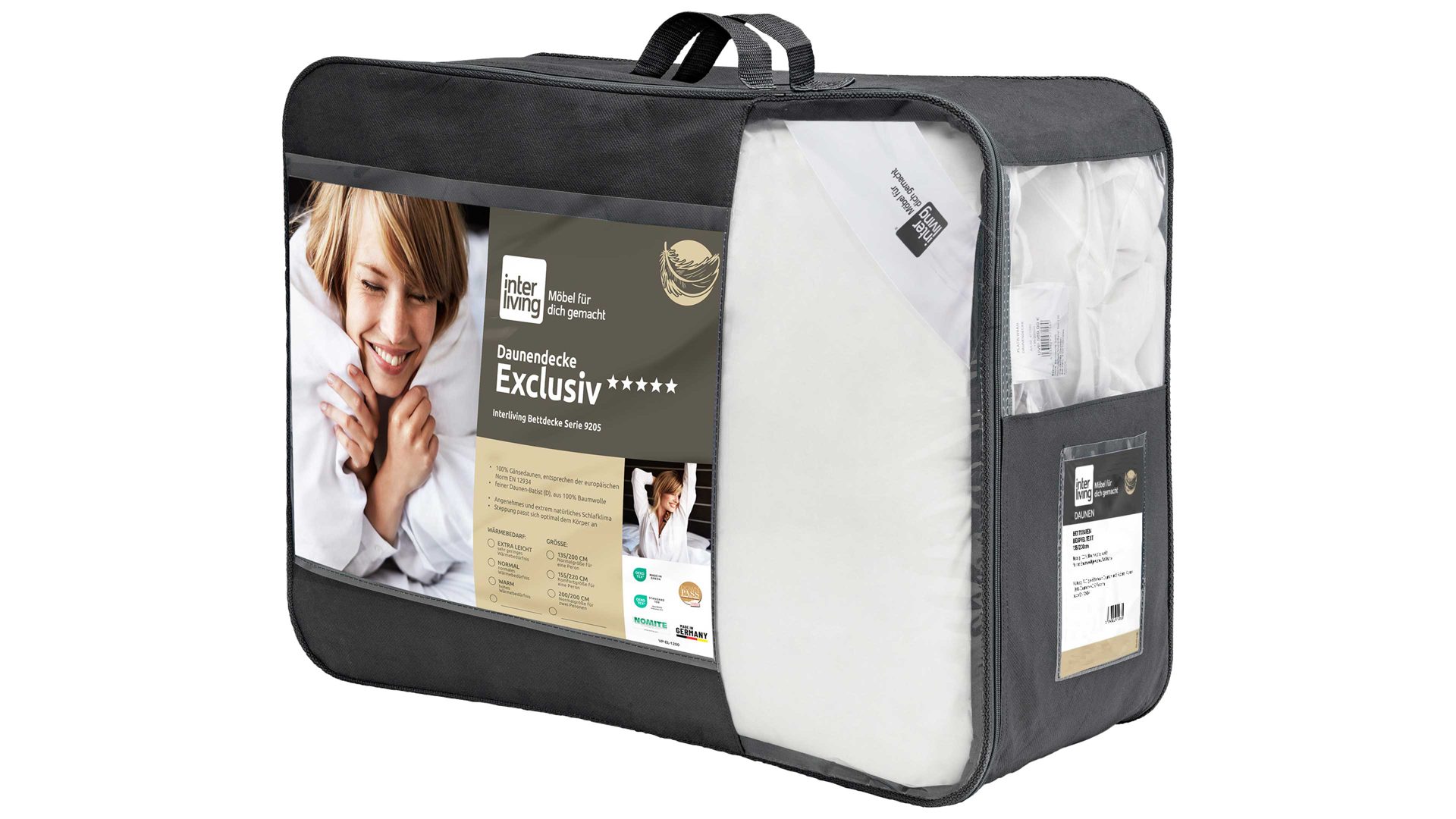 Alle Bettdecken der Interliving Bettdecke Serie 9205 sind in verschiedenen Größen und drei Wärmeklassen erhältlich – extraleichten Einzugdecke über die ausgewogene Casettendecke bis hin zur extra warmen Aussenstegvariante. Für ein harmonisches Schlafsystem passt das Kopfkissen der gleichnamigen Serie ideal dazu. Die Bettwaren der Interliving Bettdecke Serie 9205 werden klimaschonend in Deutschland hergestellt und kommen mit einer vom Hersteller gewährten 5 Jahre Herstellergarantie.