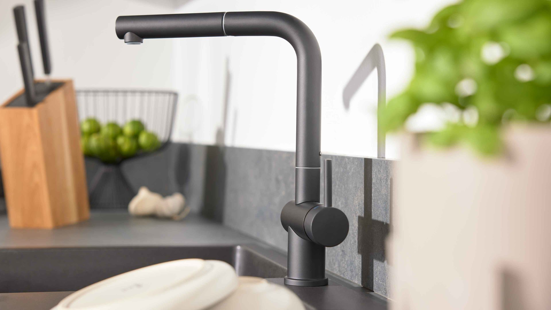 Zur Ausstattung gehören mehrere leistungsstarke Geräte von privileg. Mitgeliefert werden der Kühlschrank PRC12VS2E mit Energieeffizienzklasse E (Spektrum A bis G), das Glaskeramik-Kochfeld PCTACK6042IN mit ca. 60 cm Breite, der Backofen PBWK3NN5FIN mit ca. 60 cm Breite und Energieeffizienzklasse A (Spektrum A+++ bis D) sowie die kopffreie Dunsthaube DGHVP83LTK/1 mit Energieeffizienzklasse B (Spektrum A bis G). Ergänzt wird die Ausstattung durch eine mattschwarze Einbauspüle mit passender Einhebel-Mischbatterie. Optional kannst du die Küche um einen Geschirrspüler erweitern.
