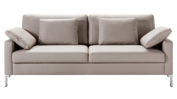 Optisch ansprechend sind der hellgrau pigmentierte Lederbezug und die Chromfüße, die das moderne und zugleich zeitlose Design des Zweisitzer-Sofas unterstreichen. Optimal sind die Sitzhöhe von ca. 45 cm sowie die zwei losen Rückenkissen des Polstermöbels. Das Leder zeichnet sich durch alltagstauglich- und pflegefreundlichkeit aus und überzeugt duch besonders weichen Griff.