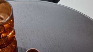 Die runde Tischplatte aus grauem Glas mit strukturierter Oberfläche setzt stilvolle Akzente und sorgt zugleich für eine pflegeleichte Nutzung. In Kombination mit dem formschönen Gestell aus gebürstetem Edelstahl entsteht ein hochwertiger Bistrotisch, der sich nahtlos in moderne Wohnkonzepte einfügt. Alternativ kannst du das Gestell auch in mattschwarz pulverbeschichtetem Metall wählen – für noch mehr Gestaltungsspielraum in deinem Zuhause.