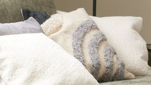 Kissenbezug mit getufteter, erhabender Vorderseite, unifarbener Rückseite und verdecktem Reißverschluss