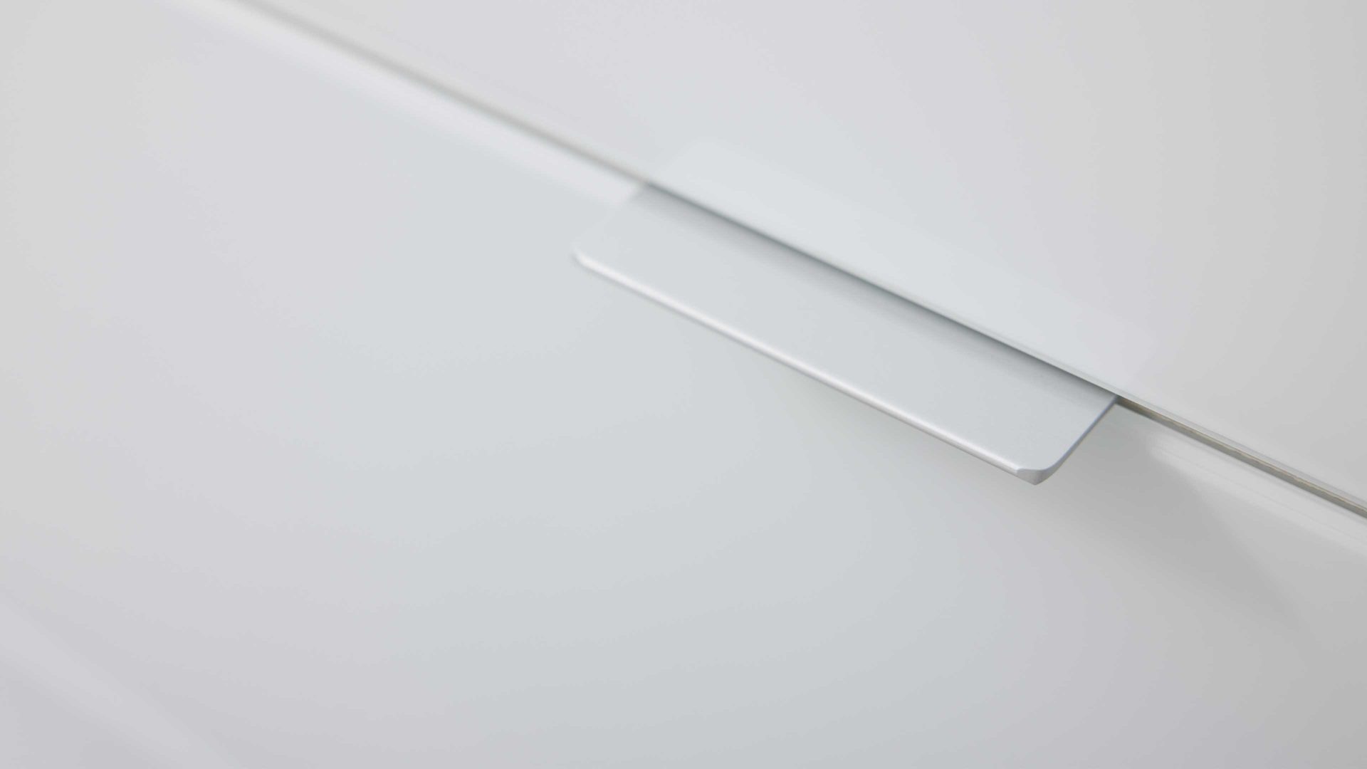 Mit ihren puristisch alpinweißen Glasfronten und dem stilvollen Oberboden in Artisan-Eiche-Nachbildung bringt die Schubladenkommode aus der Interliving Kleiderschrank Serie 1208 moderne Eleganz in dein Schlafzimmer. Matt aluminiumfarbene Griffe und die hochwertige Texline-Innenausstattung ergänzen das Design zu einem harmonischen Gesamtbild, das zeitlos und edel wirkt.