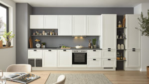 mattes Cremegrau, kombiniert mit grauer Eiche-Nachbildung