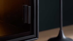 Die linke Seite des Hängeschranks ist mit einer Tür aus gehobelter und gebürsteter Asteiche versehen und bietet hinter drei Holzböden geschlossenen Stauraum für Geschirr, Bücher oder Dekoartikel. Rechts sorgt eine Glastür aus dunkelgrauem Parsolglas mit drei Einlegeböden aus Klarglas für eine luftige, transparente Optik – ideal, um deine Lieblingsobjekte stilvoll zu präsentieren. Der Materialmix aus Holz und Glas verleiht dem Möbelstück eine moderne, zugleich warme Ausstrahlung.