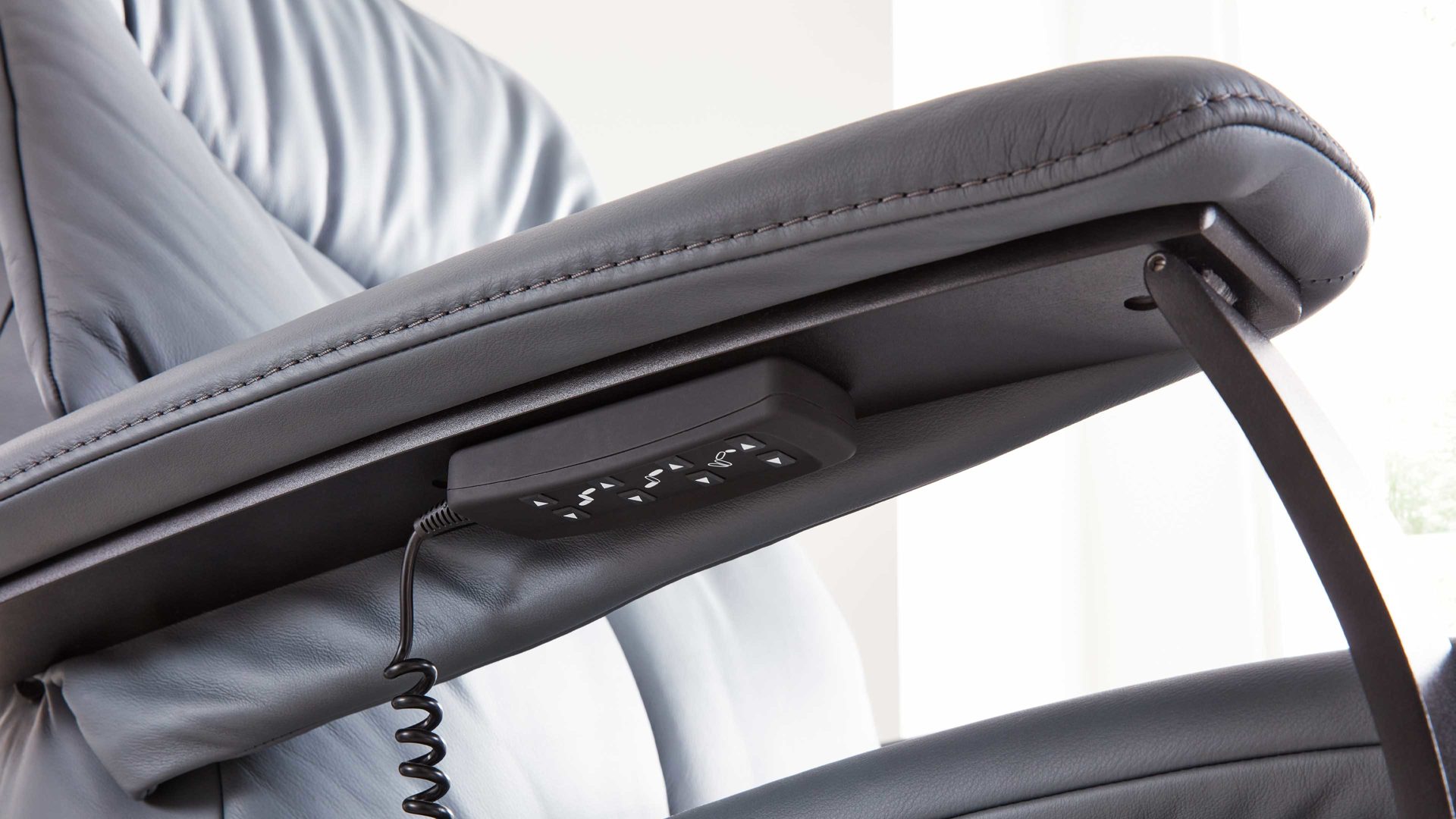 Die Interliving Sessel Serie 4561 überzeugt durch zahlreiche Komfortfunktionen, die ihn zu einem echten Highlight machen. Optional kannst du ihn mit einem elektrisch verstellbaren Kopfteil ausstatten, das sich perfekt an deine Sitzhaltung anpasst. Eine Sitz- und Rückenheizung sorgt für wohlige Wärme, während die elektrischen Varianten optional mit Akku ausgestattet werden können, der sich dezent mit einer Hülle im Bezugsmaterial verdecken lässt. Für maximale Entspannung steht dir außerdem ein Air-Massage-System mit fünf Luftkammern zur Verfügung, darunter eine manuell einstellbare Lordosenstütze. Der Magnethandschalter mit Spiralkabel lässt sich bequem am Seitenteil befestigen – so bleibt alles griffbereit und ordentlich.