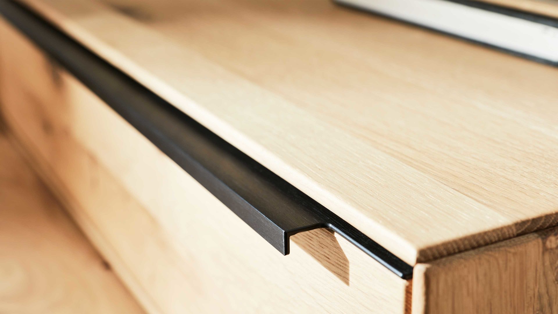 Das Lowboard aus der Interliving Wohnzimmer Serie 2020 vereint hochwertige bianco geölte Asteiche mit cleverer Medienorganisation – perfekt als stilvolles TV-Möbel oder HiFi-Unterschrank. Die schwarzen, aufliegend integrierten Aluminiumgriffe setzen einen modernen Akzent und unterstreichen die erstklassige Verarbeitung. So entsteht ein harmonisches Zusammenspiel aus natürlicher Holzoptik und zeitgemäßer Technikfunktion.