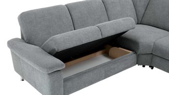 Dieser Bettkasten ist eine Mehrpreis-Funktion für die 2,5-Sitzer aus dem Modulmaster Programm MM-ZE1129. Dank seiner im originalen Stoff der Couch bezogenen Front fügt er sich absolut harmonisch ins Gesamtbild ein. Innen ist der aufklappbare Stauraum weiß beschichtet. Er bietet Ihnen eine praktische Aufbewahrungsmöglichkeit für Textilien wie Decken und Zierkissen, aber auch für Spiele, Kinderspielzeug und andere Gegenstände.