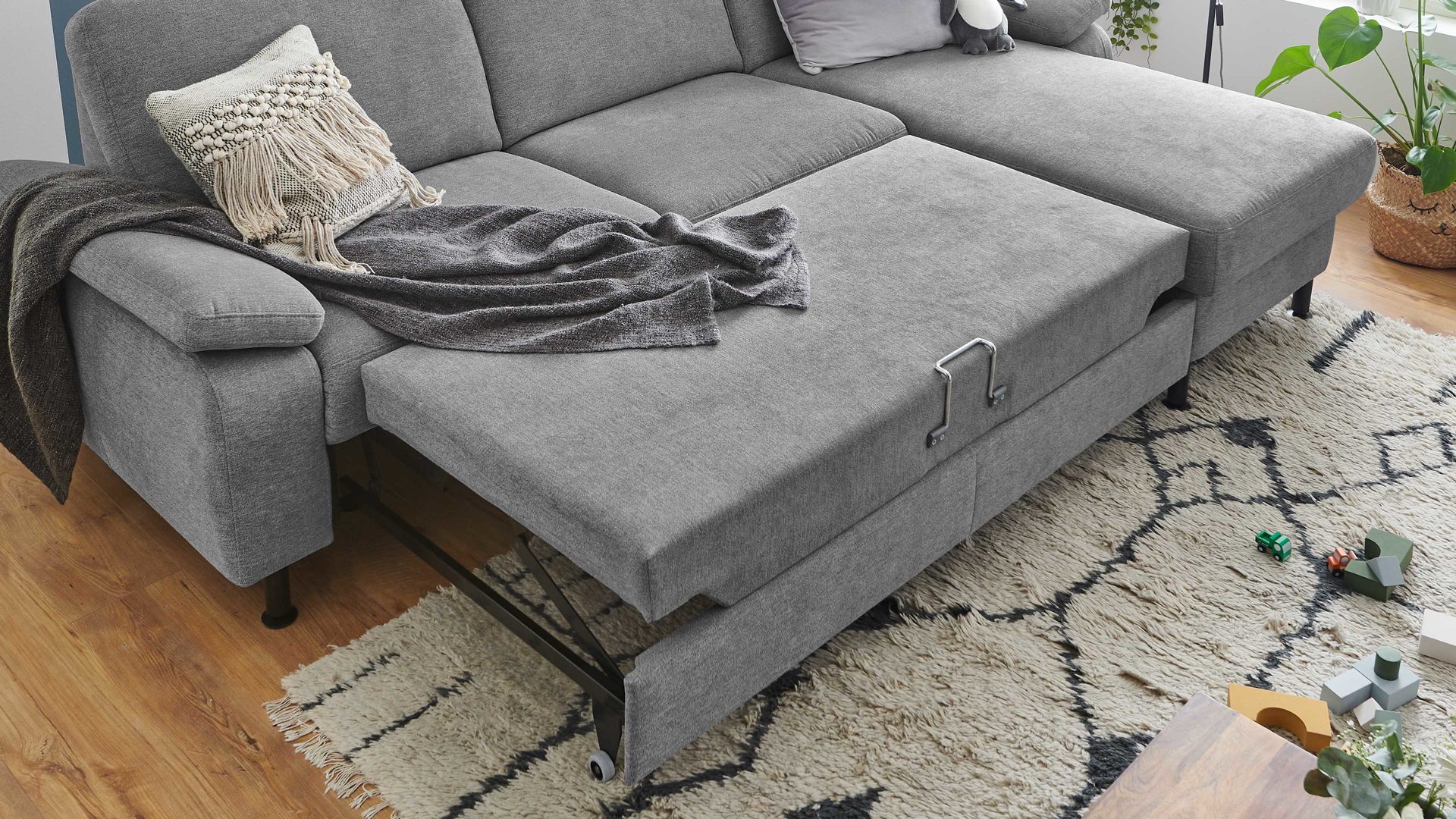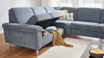 Dank der Kaltschaumpolsterung auf stützender Wellenunterfederung sitzen Sie auf der Couch sehr bequem. Dazu tragen auch die ebenso mit angenehm weichem Kaltschaum gepolsterten Rückenlehnen bei. Die Polsterecke hat eine Sitzhöhe von ca. 48 cm und eine Sitztiefe von ca. 54 cm. Praktisch ist die enorme Bodenfreiheit - perfekt für den Einsatz eines Saugroboters.