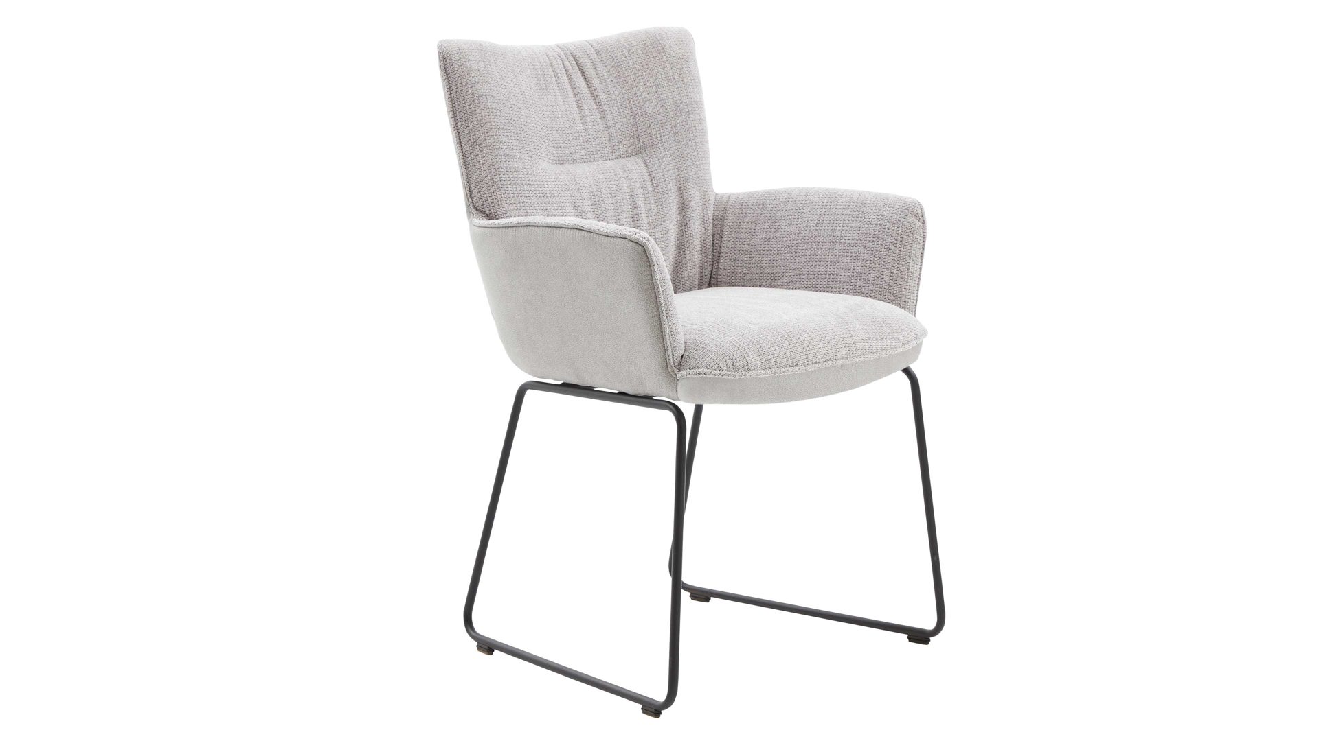 Modern, gemütlich und markant: Der Schalensessel aus der Interliving Esszimmer Serie 5111 vereint stilvolles Design mit hohem Sitzkomfort. Der platinfarbene Bezug in einer Kombination aus Mikrofaser außen und Webstoff innen verleiht dem Stuhl eine warme, einladende Ausstrahlung – perfekt für ein wohnliches Esszimmerambiente.