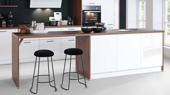 Hinzu kommt eine hochwertige Edelstahl-Einbauspüle. Optional können Sie die Küche Made in Germany auch mit einem praktischen Geschirrspüler erweitern.