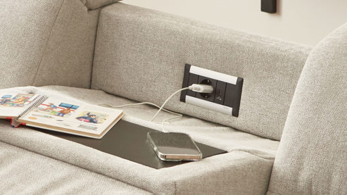 Als zusätzliches Highlight sind in den Rückenteil des Sofas Funktionsbuchsen - genauer gesagt eine Steckdose und ein USB-Anschluss - integriert. Somit können Sie hier auch bequem Ihr Mobiltelefon aufladen oder Ihr Notebook anschließen.