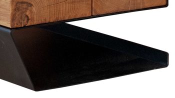 Hergestellt aus massiver geölter Wildeiche und schwarzem Metall, verleiht diese Konsole Ihrem Schlafzimmer einen modernen und stilvollen Look. Mit einer Größe von ca. 39 x 15 x 33 cm (BxHxT) bietet die Bettkonsole ausreichend Platz für Ihre persönlichen Gegenstände. Die praktische Metallablage ermöglicht es Ihnen, Bücher, Zeitschriften oder andere Dinge griffbereit zu halten.