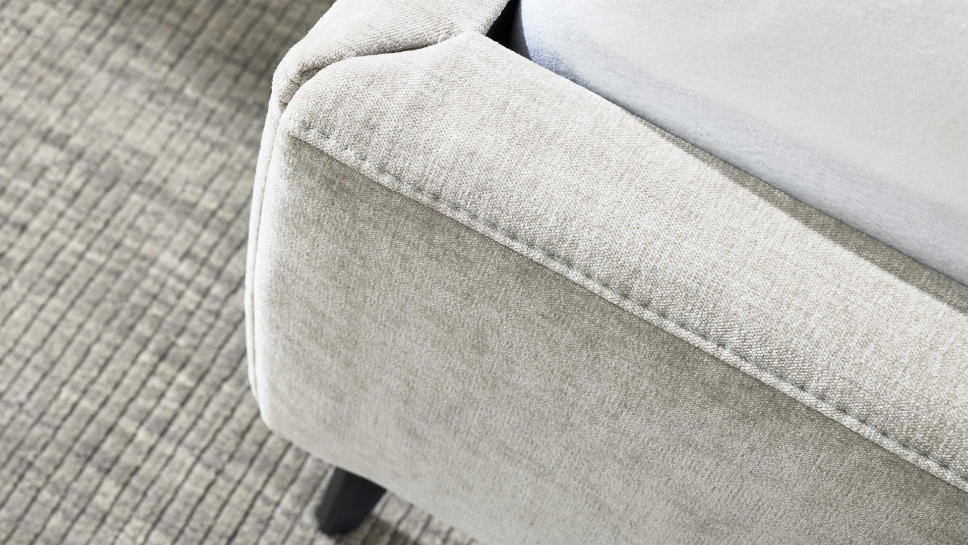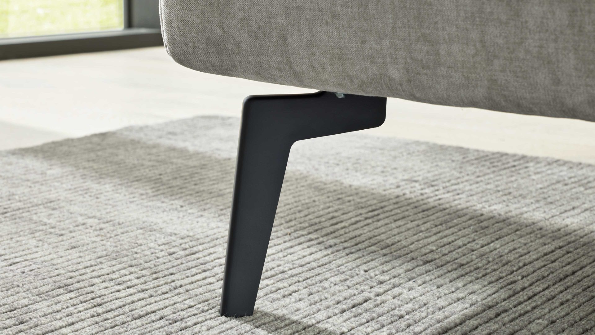naturweiße Chenille Kama 680000 & schwarze Metallfüße – Liegefläche ca. 180 x 200 cm