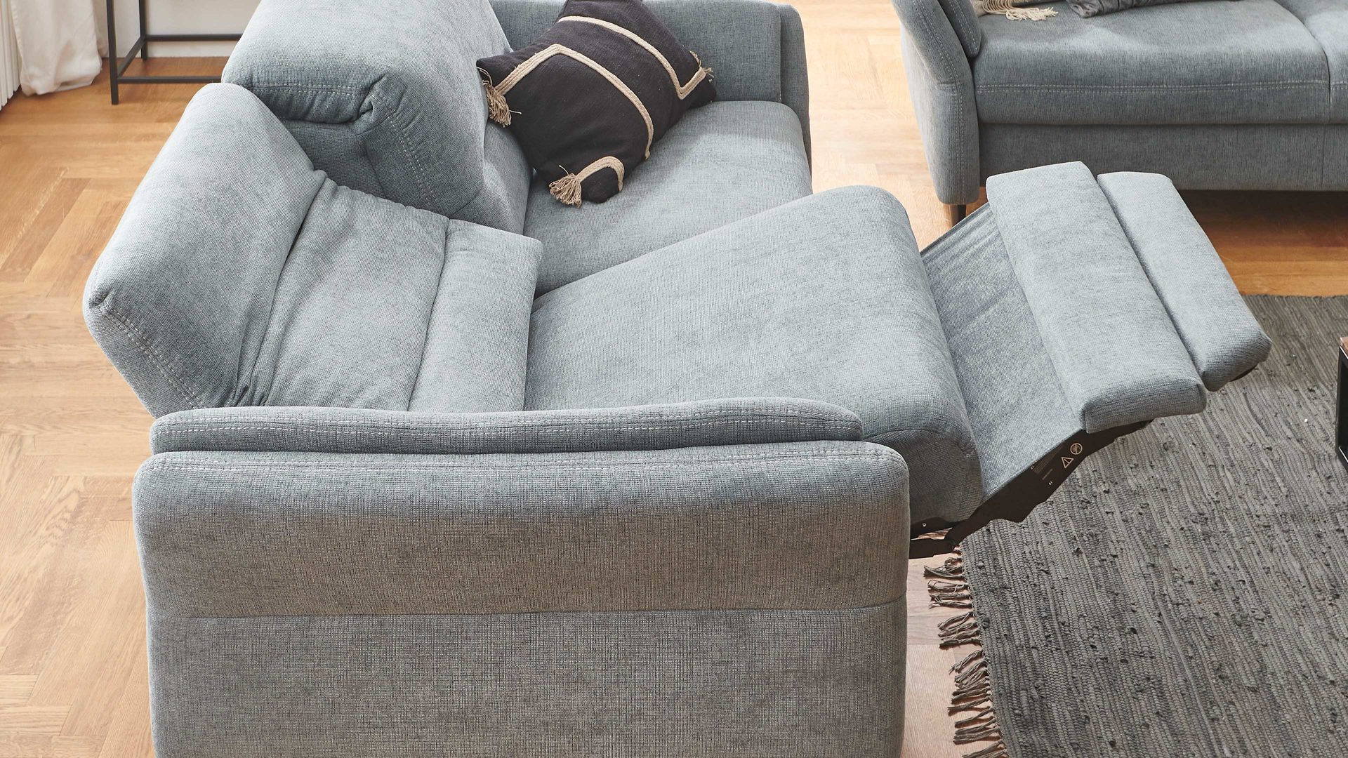 stahlfarbener Stoffbezug Milan & schwarze Metallfüße - Länge ca. 213 cm