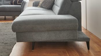 stahlfarbener Stoffbezug mit beiger Kontrast-Doppelsteppnaht