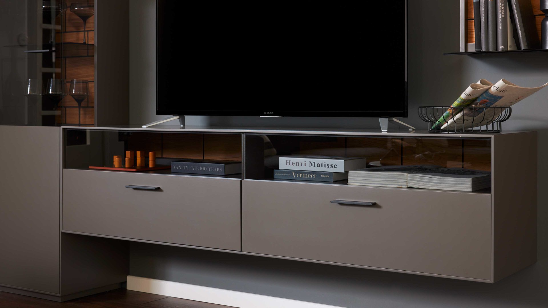 Die Interliving Wohnzimmer Serie 2030 steht für hohe Qualität, edle Materialien und flexible Planungsmöglichkeiten. Softclose-Türen und Schubladen mit Selbsteinzug sorgen für ein angenehm leises, komfortables Nutzungserlebnis. Die Möbelstücke werden fertig montiert geliefert und lassen sich ideal mit weiteren Elementen der Serie kombinieren – für maximale Gestaltungsfreiheit. Optional kannst du ausgewählte Komponenten mit einer stimmungsvollen LED-Beleuchtung ausstatten, um deine Lieblingsstücke gekonnt in Szene zu setzen.