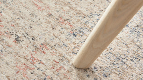 die furnierte Tischplatte wird jeweils von drei Massivholzfüßen getragen
