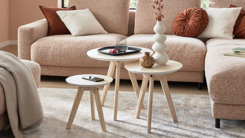 dreiteiliges Tisch-Set mit Massivholzgestellen