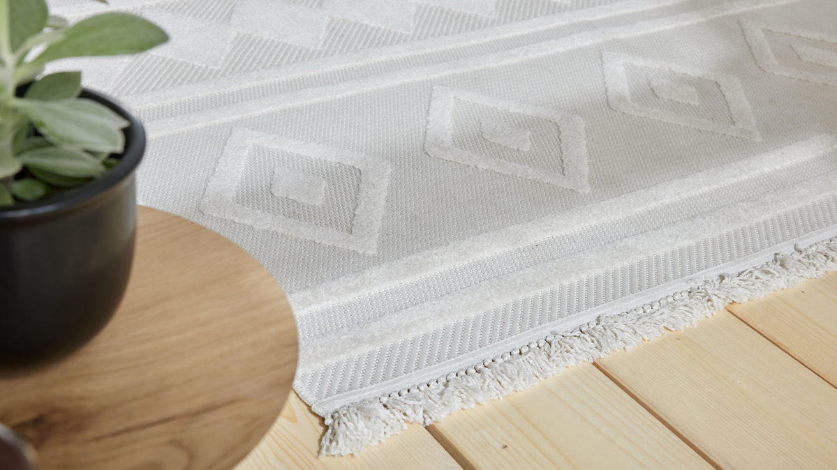 maschinell gewebt, mit kurzen Fransen