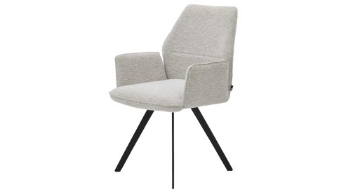 Der Vierfuß-Armlehnstuhl aus der Interliving Esszimmer Serie 5102 bringt modernen Komfort und klares Design in deinen Essbereich. Der leinenfarbene Jacquardbezug sorgt für eine ruhige, wohnliche Optik, während das mattschwarze Eisen-Stativgestell dem Stuhl einen modernen, leicht industriellen Charakter verleiht. Die Rückenlehne mit drei Steppnähten setzt einen dezenten, stilvollen Akzent.